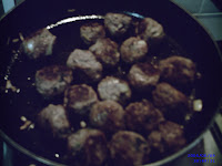 Esquente a frigideira e coloque azeite ( regue o fundo, não encha!) e coloque as bolinhas para fritar e veja a reação de Maillard: a cor vermelha vai dando lugar ao tostadinho e conforme voce vai virando as bolinhas sua boca vai salivando!!!!!!!! Não resista, pegue uma quentinha e coma! É muito bom!O que está esperando? Já para a cozinha, fazer reação de Maillard!