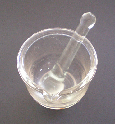 almofariz com pilão ( usados para triturar e pulverizar sólidos)